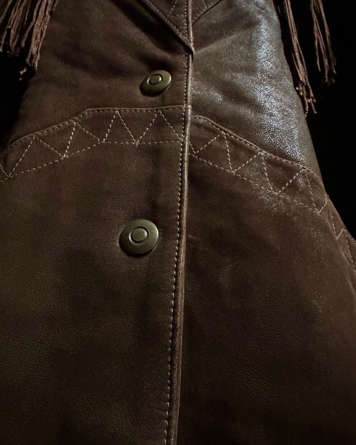 ヨークに沿って施されたフリンジ、重厚感のあるコンチョボタン、ステッチにアイレットなど、かなり精巧に作り込まれており、ヴィンテージレザーにおいてコンディションやサイジングを加味しても中々お目にかかれない1着かと。