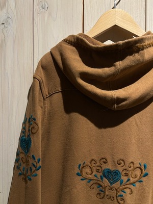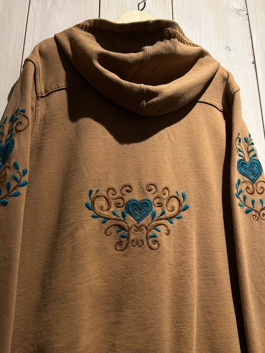 刺繍やスタッズ、ビジューの立体感のあるデザインがバランスよく纏まり、高いデザイン性を持ちながらも様々なスタイル馴染む仕上がりに。フードやポケットにはステッチを施し細かいディテールにも抜かり無し。