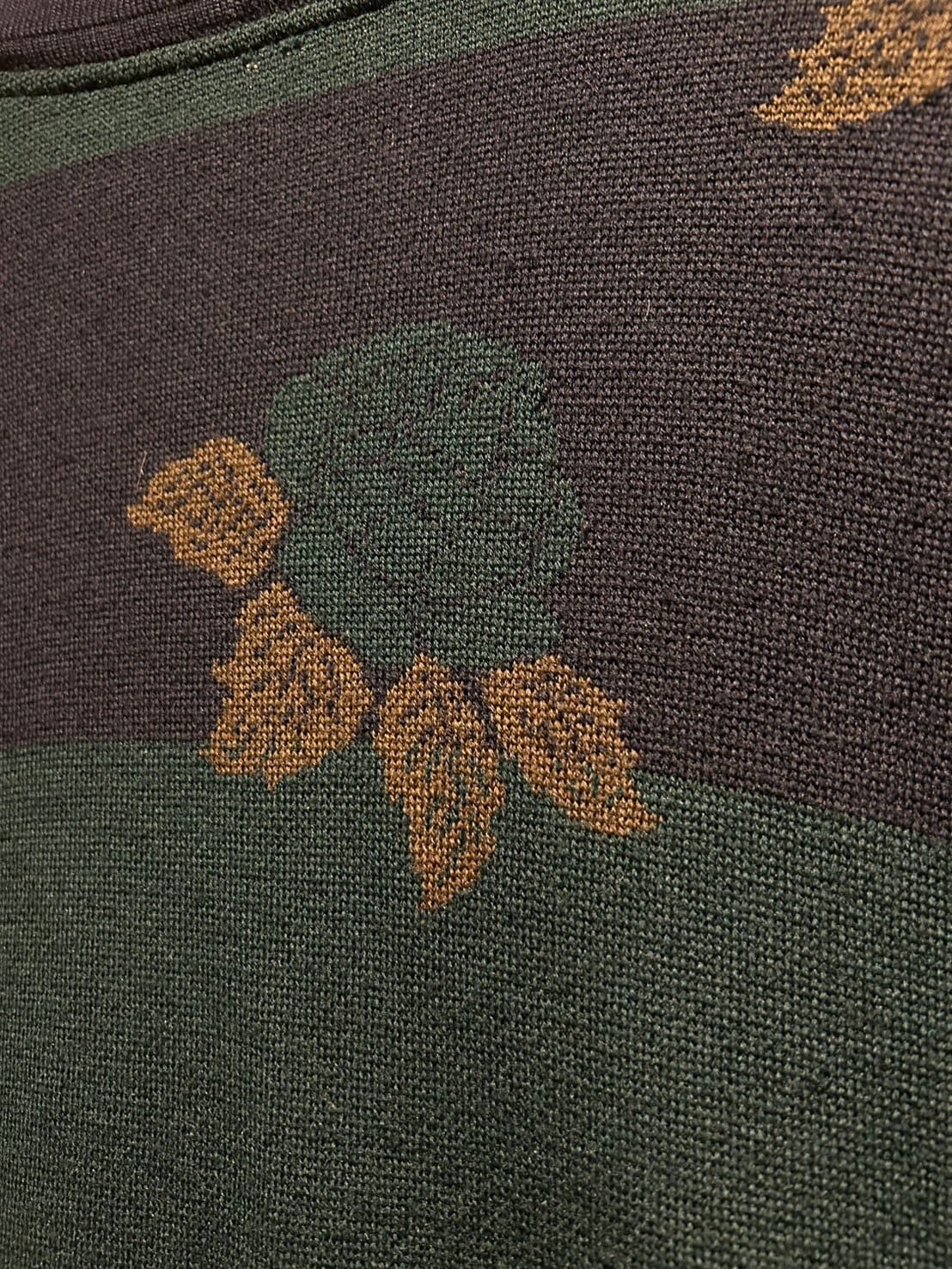 落ち着きのあるネイビーとグリーンの色合わせや大ぶりなバラのデザインが高級感を漂わせます。