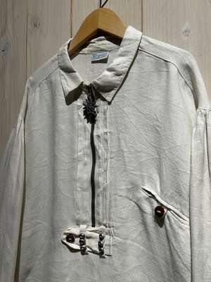 柔らかくしなやかで程よく味の出たリネンボディをベースに、チロリアンのデザインを落とし込んだ1着。